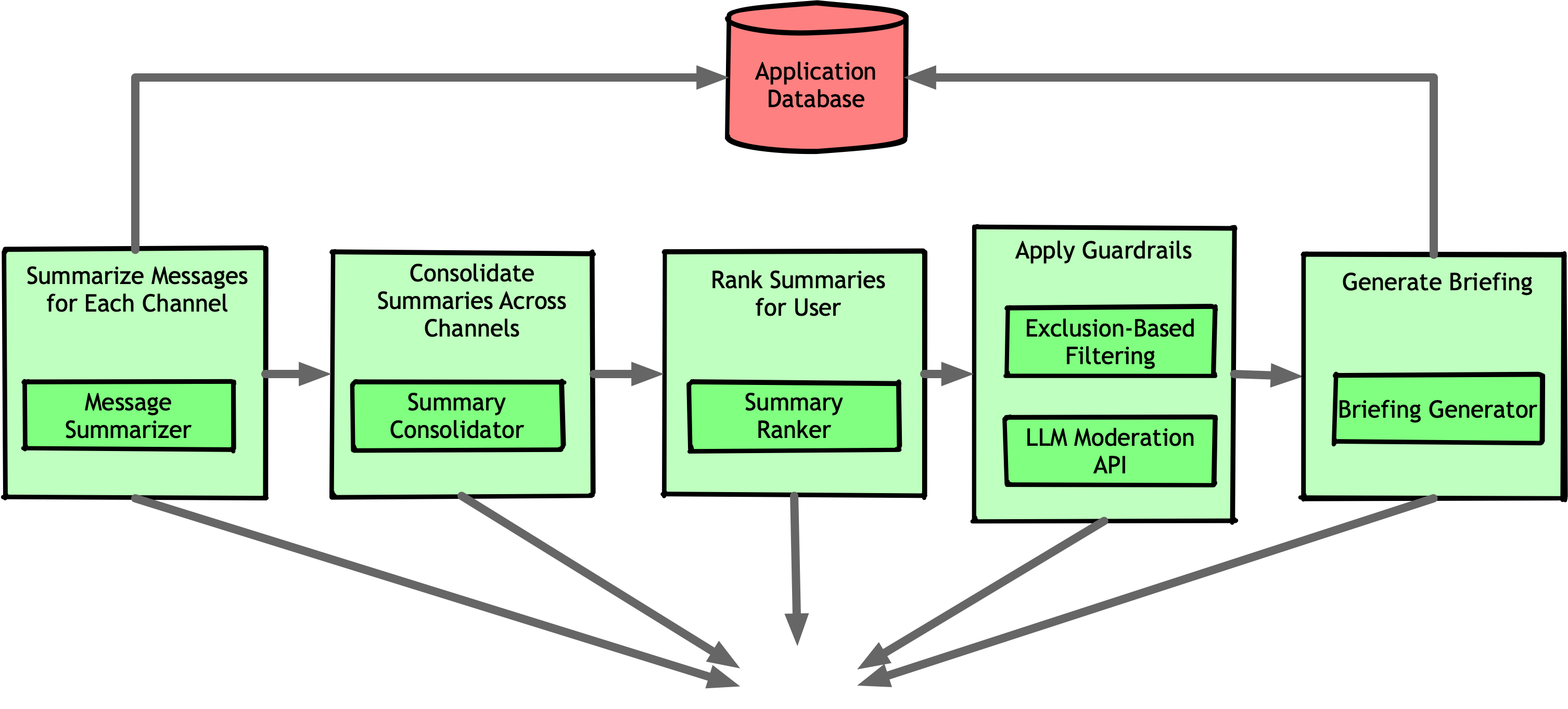 To build the new feature, we reused the core logic from the latter half of the daily briefing pipeline and simply added a few components to handle different inputs: